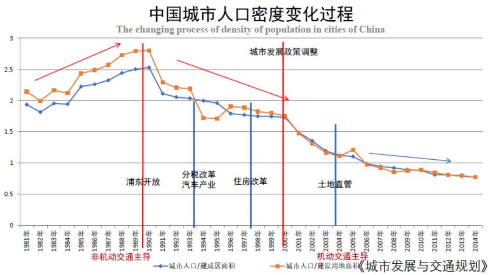 城市化、城市发展政策与机动化共同作用促进了城市的扩张