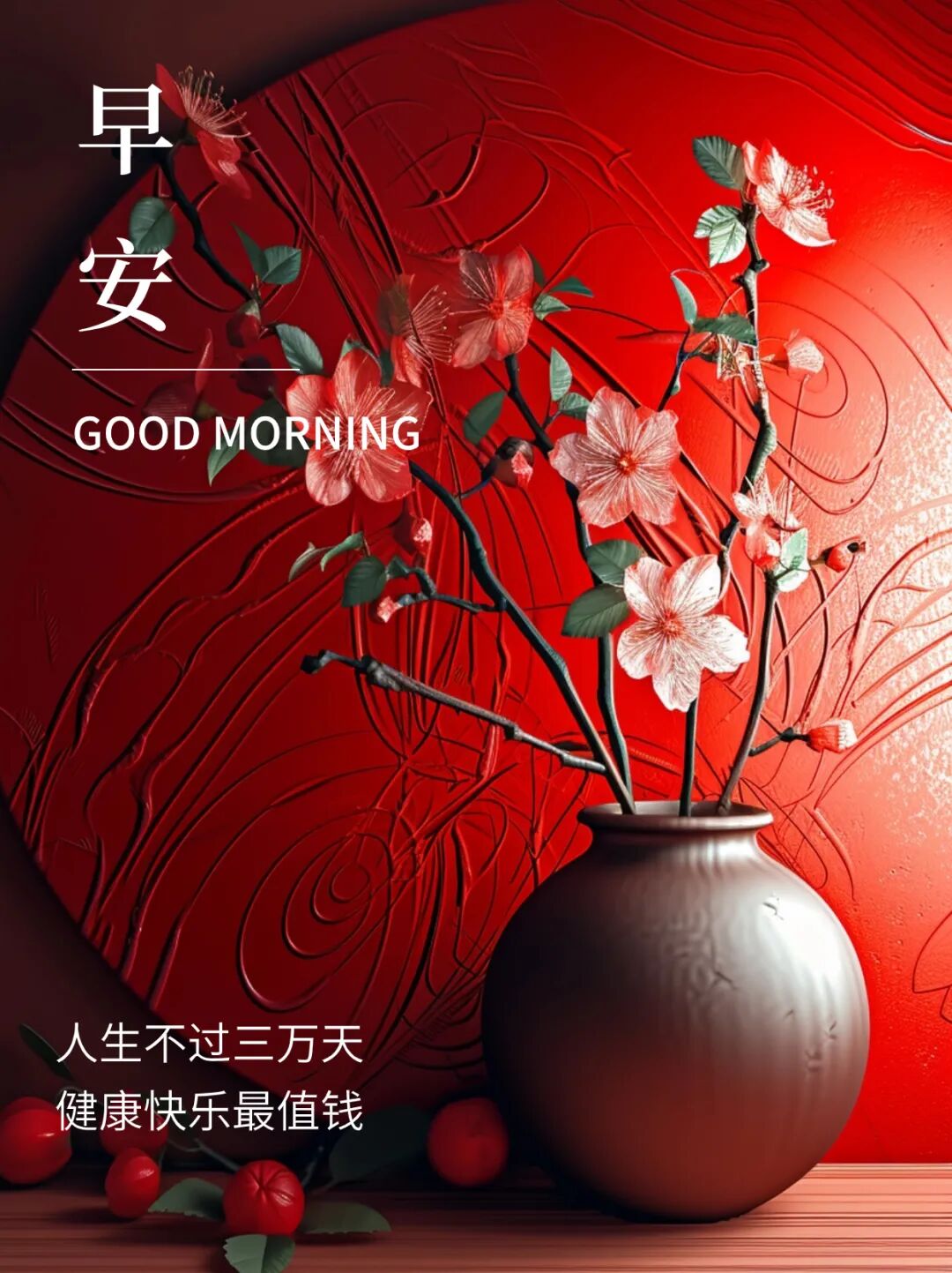 早上好, 一生所想,不过饱餐和被爱。一生所求,不过温暖与良人。一生所梦,不过幸福与快乐。一生所愿,不过平安和健康。只要每天踏踏实实的 ,就是最幸福的一天。