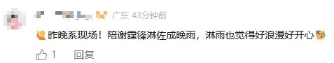 对此有网友表示:昨晚陪谢霆锋淋雨也觉得好浪漫!