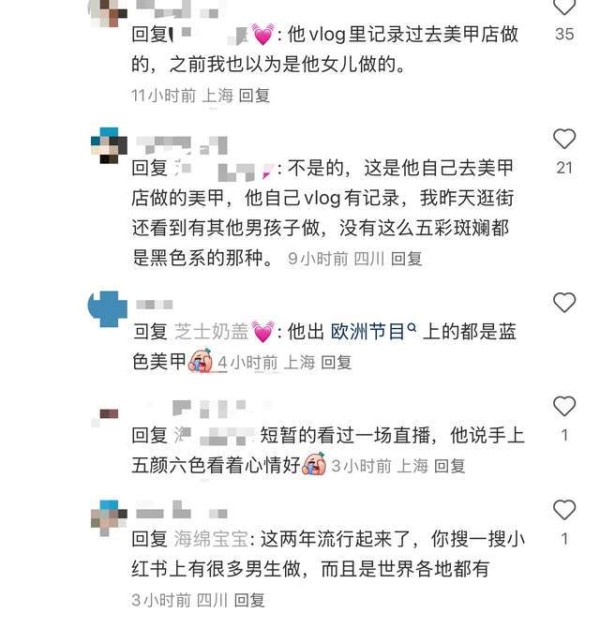 仔细看陈赫还做了美甲,五彩缤纷很鲜艳,对此他提到过,自己很喜欢看着指甲五彩缤纷的,所以会定时美甲。
