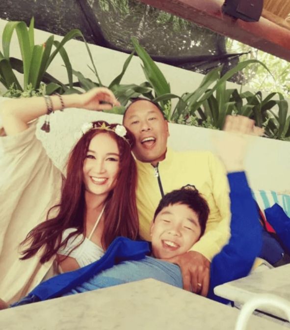 温碧霞晒一家三口合照!与老公何祖光送养子去学校