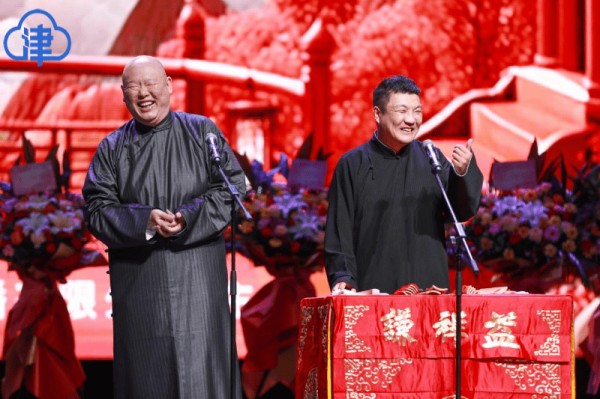 当晚,许健与搭档谷宗翰联袂献上《负荆请罪》,这段作品为创编新作,重于表演,包袱密集、节奏明快,赢得满堂喝彩。相声名家王玥波的跨刀助阵成为一大亮点,他与许健合作的《写春联》巧妙融合传统曲艺与现代表达,可谓老活新说的典范。两位演员以传统春联文化为载体,融入津味幽默与即兴互动,打造出兼具文化底蕴与喜剧效果的舞台呈现。