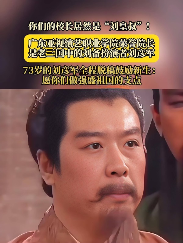 9月22日,广东亚视演艺职业学院的新生军训总结大会暨开学典礼上,一位特殊的校长引发关注——他正是94版《三国演义》中刘备的扮演者、国家一级演员、导演孙彦军。1952年3月4日出生于黑龙江省哈尔滨市巴彦县西集镇的他,作为该校首任校长及终身荣誉校长,在演讲中说道:“办学和演戏本质是相通的,都是在塑造人。”