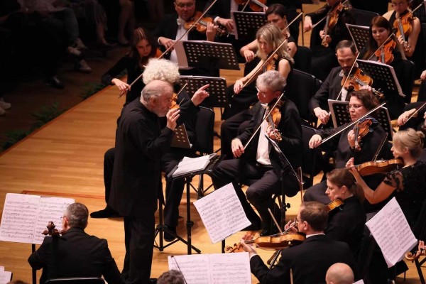 指挥捷杰耶夫以精准而富戏剧性的节奏统领全曲:首乐章低音铜管沉郁如夜幕,弦乐与吉他轻盈似星光;夜曲部分柔刚并济,梦幻与讽刺交织;终乐章号角迸发,乐团将多重主题层层堆叠,掀起震撼音浪,带有“俄式反讽”的演绎更添厚重宿命感。演出结束时,全场掌声雷动,欢呼点燃音乐厅。