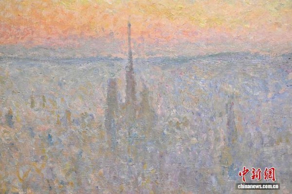 图为克劳德·莫奈的《从圣凯瑟琳海岸眺望鲁昂》(局部)。中新网记者 李志华 摄