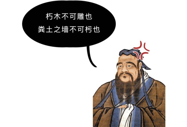 宰予是王室贵族子弟,从小骄纵惯了。一次上课时,宰予对孝道提出疑问,认为如果所有人都要守孝三年,农民就无法耕种,社会将陷入困境。对此,孔子十分生气,他愤怒地回击宰予:“朽木不可雕也,粪土之墙不可圬也!”这句话意思是,像宰予这样的人根本无法教育,他就像是无法雕刻的枯木,不能雕饰,像是无法修补的破墙。