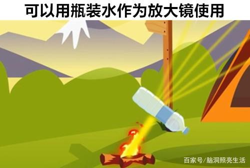 在野外郊游的时候,一般都需要点篝火,那么要是忘记带打火机这样的引火工具,这该怎么办呢?其实可以用瓶装水来完成,只要是天气足够炎热,将瓶装水放在太阳照射的位置,下面是一堆柴火,那么只需要耐心等上一段时间,就会成功地把柴火点燃,当然,也正因为如此,在炎热的夏天时,瓶装水也不要长时间的放在车里,避免发生着火的情况出现。