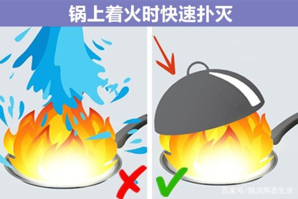 在日常做饭时,煤气灶上的锅发生着火,这样的情况还是很危险的,有的人就会感到很害怕,慌忙的想要用水来扑灭火焰,然而不仅没有效果,结果还会让火势更凶险,所以一定不要这么做,而正确的做法,先关闭燃气总阀门,然后用东西盖住燃烧的锅,这样做会切断火的热量和氧气供应。