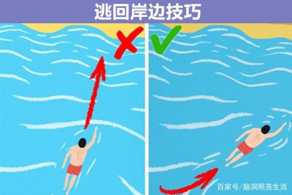 根据专家来讲,一旦自己被卷入“离岸潮”之后,一定不要直接往岸边游,这样做是完全徒劳的,正确的做法则是,平行于岸边游泳以避开水流,也就是顺着向下游,等到离开水流后,斜着游到岸边,这样才可以成功的回到岸上。