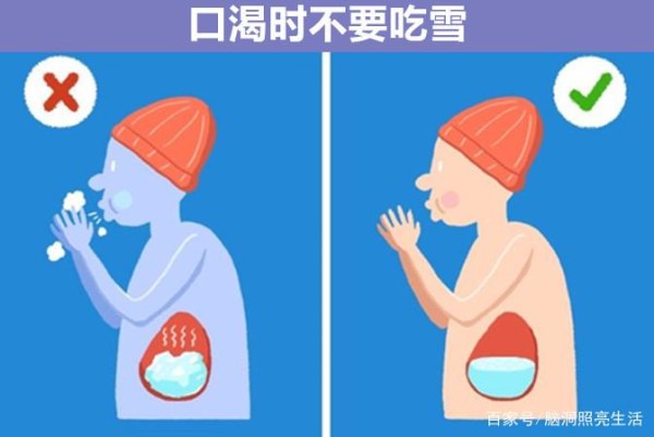 在冬季户外游玩的时候,即使口渴也不要选择吃雪,虽然有的人认为,这样做是没有任何问题的,但这样做得后果,也许会让你有生命危险,为什么会这么说?这是由于冷雪会让你身体降温,并且会消耗额外的能量来保暖,所以除非迫不得已,否则千万不要这么做,可以选择把雪水融化煮沸之后饮用。