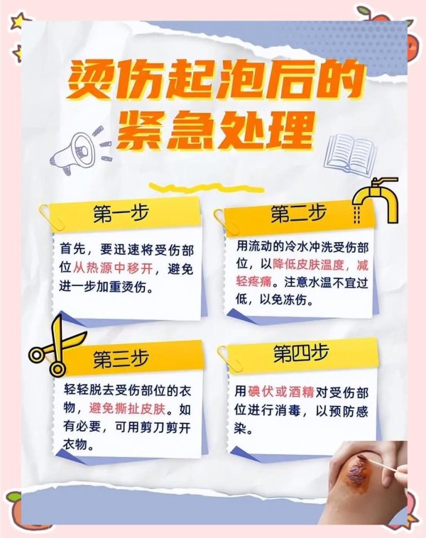 如果不慎被开水烫伤,千万不要随意涂抹牙膏或酱油。正确的做法是,立即用 流动的凉水冲洗伤口,持续15-20分钟,以降低皮肤温度并减轻疼痛。之后,根据烫伤的严重程度,及时就医接受专业治疗。