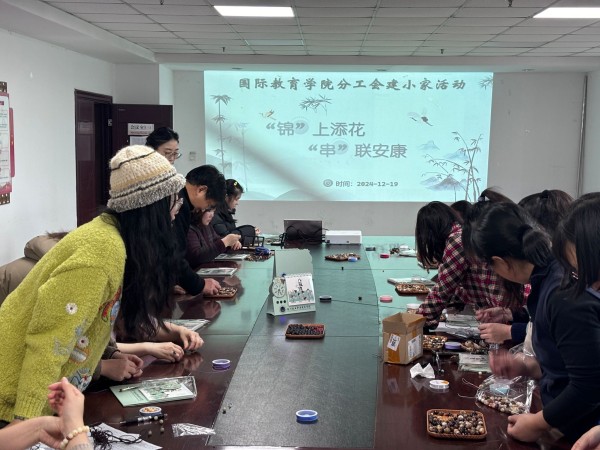 12月19日中午,苏州农业职业技术学院国际教育学院分工会在行政楼406会议室成功举办了一场主题为“锦”上添花,“串”联安康的建小家活动,为分工会会员带来了融合传统养生文化与创意手工乐趣的精彩体验。