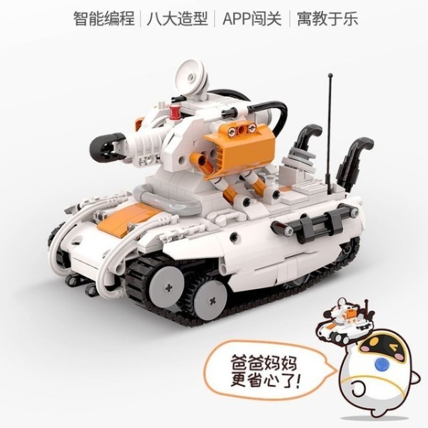 第二款推荐的是一台可编程的履带式积木车,内部全是零部件,孩子们玩起来可能要一些耐心,但安装完毕后还是蛮方便的,操作不复杂,也有着玩进去的乐趣。