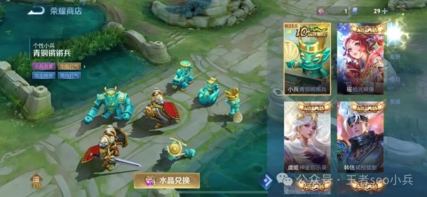 除了王者荣耀的无双限定返场和上架之外,最近将会有不少活动结束。比如说限时点券商城下架,碎片商城里面的皮肤轮换。还有,就是荣耀典藏商店皮肤下架。是的你没看错,王者荣耀典藏商店里面的小兵皮肤要下架了哦。