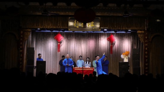 作为长沙首家每日上演相声的茶馆,得乐社当晚的表演堪称精彩。开场演员模仿腾格尔独特嗓音,瞬间点燃全场气氛;词语接龙环节巧妙串联观众互动,台上台下笑声不断;压轴演员奇志的方言演绎,更是将南派相声的“在地化”魅力展现得淋漓尽致。