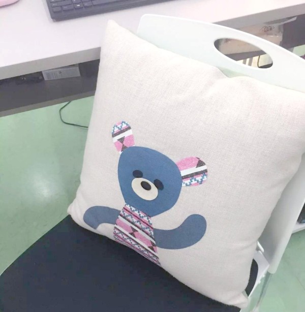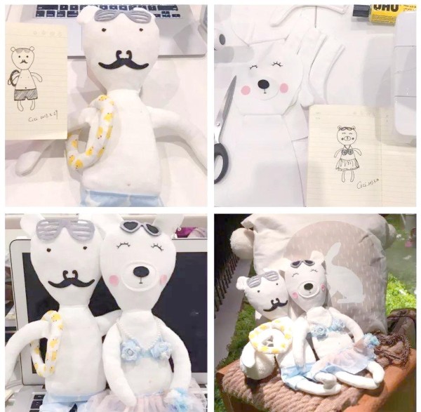 第二步:在确定小熊脸部的表情细节后,我们采用平缝法,将脸部与身体逐一进行缝合。