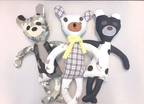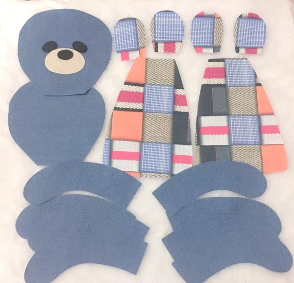 第四步:将缝合完成的耳朵、手、腿逐一翻至正面,展示出小熊的造型。