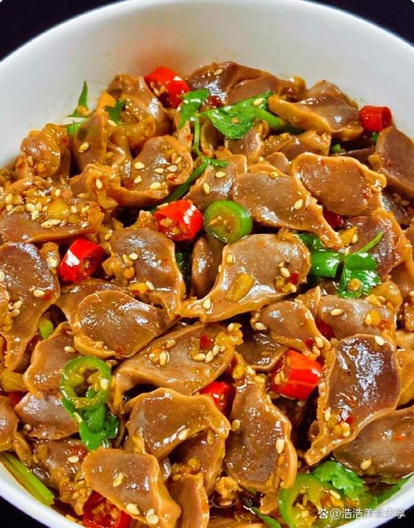 所需食材:鸭胗 香菜 辣椒面 蒜末 葱 姜 芝麻 小米辣 香醋 蚝油 生抽 胡椒粉 白糖 盐 料酒
