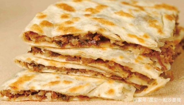 麦饼皮以麦粉制成,地道的芙蓉麦饼是在平底锅上不断翻转、炙烤出来的,皮脆而馅香,这种味道是如今的电饼铛做出的麦饼无法比拟的。好的麦饼的标准是皮要薄,且两面厚薄要均匀。