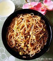 涡阳干扣面,是涡阳的一种独具风味的面食,以煮熟的黄豆芽作铺垫,配以蒜汁、葱花、味精、胡椒、食醋、香油、酱油等为底料,煮熟的面条如雀巢一样覆盖其上,再以油炸辣椒作上料,充分搅拌以后即可。