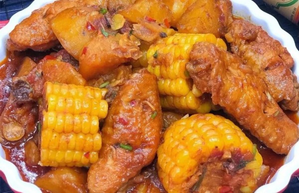 加入土豆和玉米:土豆去皮洗净,切成滚刀块,放入锅中。再放入玉米段,继续炖煮 15 - 20 分钟,期间适时翻动食材,确保炖煮均匀,直到土豆和玉米熟透,汤汁浓稠。这道土豆玉米烧鸡翅,鸡翅鲜嫩多汁,土豆软糯香甜,玉米清甜可口,香味浓郁。
