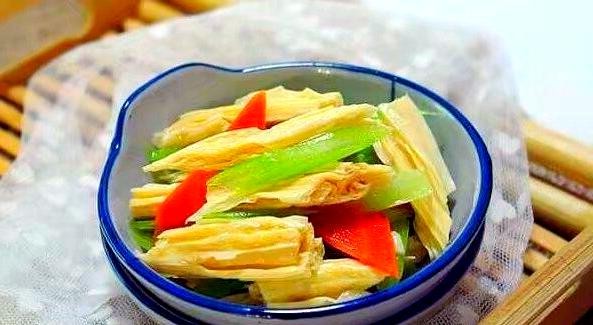 在制作这道凉拌芹菜腐竹时,我们将腐竹与芹菜、胡萝卜需泡发及焯烫,同时加入蒜末和白醋进行调味,以确保口感的最佳。首先将腐竹掰成小段,放入盆中加入小勺盐和适量凉水进行泡发。在盆上压一个大碗,确保腐竹均匀泡发。泡发完成后,将腐竹、芹菜切成段,胡萝卜切片,蒜切末备用。