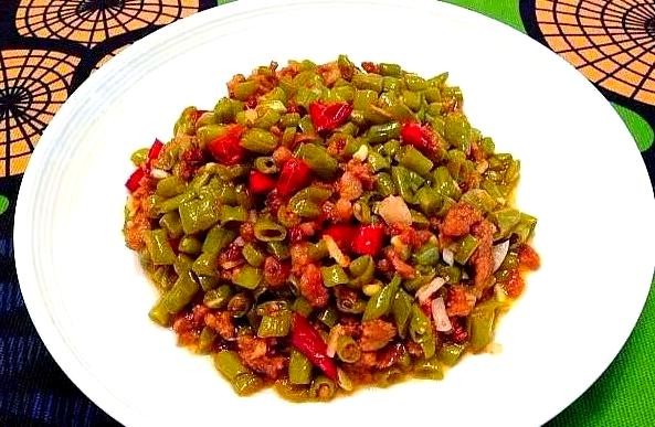 酸豆角的需泡水切段,与猪肉炒至入味,酸香开胃,美味无穷。
