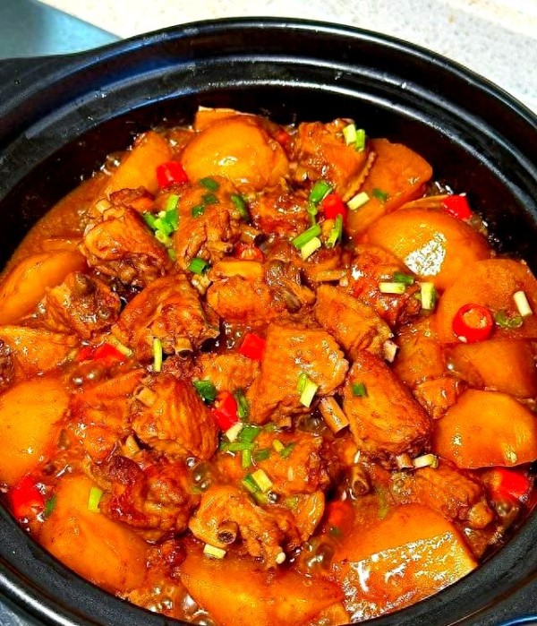 鸡翅经过焯烫、煎制,入味后口感鲜美,与土豆融合更佳。