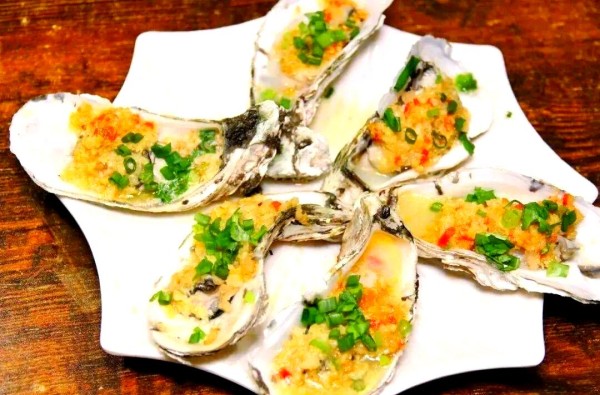 生蚝在烤箱中用黄油蒜酱汁等调味烤制5-8分钟,直至边缘变褐色,最后调味装盘。所需食材:生蚝12个(新鲜或冷冻均可),蒜蓉2大勺,新鲜香菜切碎后2大勺,柠檬汁2大勺,黄油4大勺,切碎的巴马干酪1/4杯(可根据个人口味选择添加),盐和黑胡椒粉适量。