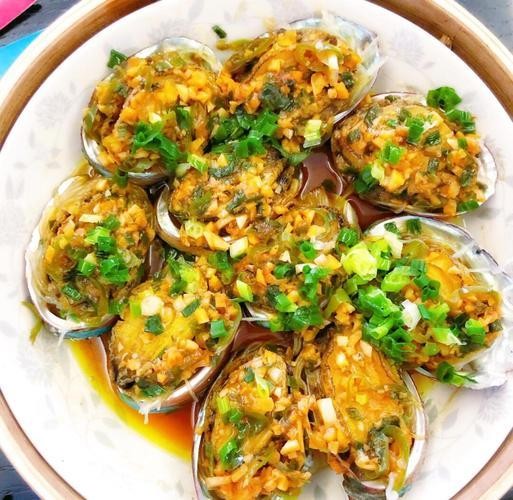 鲍鱼剖开清洗,粉丝浸泡后铺底,加配料后蒸制12分钟,最后拌和调味。食材:8个鲍鱼、适量蒜末、辣椒段、粉丝、生抽、葱花、食盐和食用油。