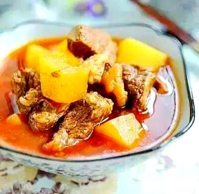 当牛肉炖至酥烂时,加入土豆和胡萝卜块,继续炖煮至所有食材都充分吸收汤汁。