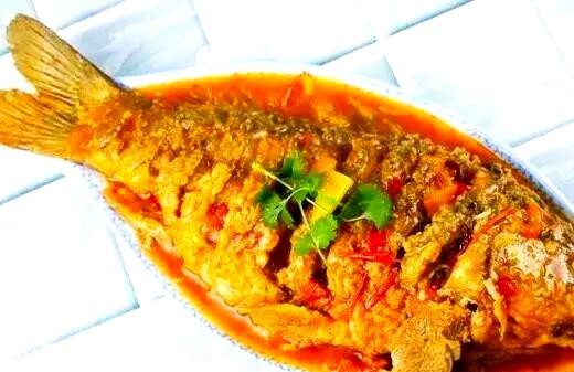 鲤鱼腌制后煎制,加入豆瓣酱等调味焖煮8分钟,收浓汤汁后装盘。