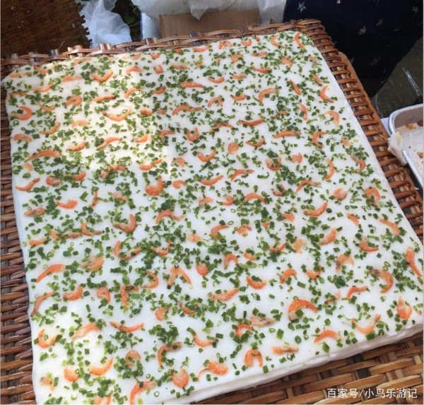 虾米糍是斗门区的非物质文化美食,是珠海有名的小吃之一。虾米糍从往日的午间小食到如今是人们的早点,是斗门镇一直流传至今的传统民间小食,已有几百年历史。虾米糍好吃,而且营养价值高,正宗口味的虾米糍在制作上很讲究。虾米糍制作有12层之多,每层叠在一起最上面的一层铺满虾米和葱,其需要把数十斤的优质粘米研磨成米浆,把米浆摊在蒸笼上,用蒸笼把它蒸熟,在最上面撒上一些虾米和葱花,这道珠海小吃就完成了,口感清爽,Q弹鲜香,不少第一次去珠海的人都会被这道小吃吸引。