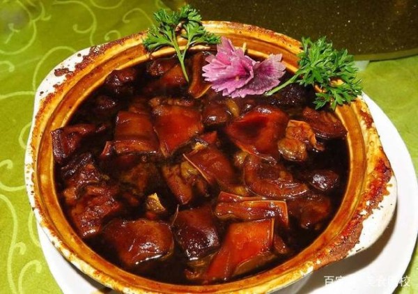 黄狗猪头肉为宿迁市名吃,也称为宿迁黄狗猪头肉、乾隆老汤黄狗猪头肉,为清朝乾隆十二年(1747年)黄德所创。黄狗猪头肉与扬州扒烧整猪头齐名,都是北方猪头肉做法的代表。不同的是,扬州的猪头是整形上桌的,而宿迁的猪头肉是切成块烧的,外形上与红烧肉无异。