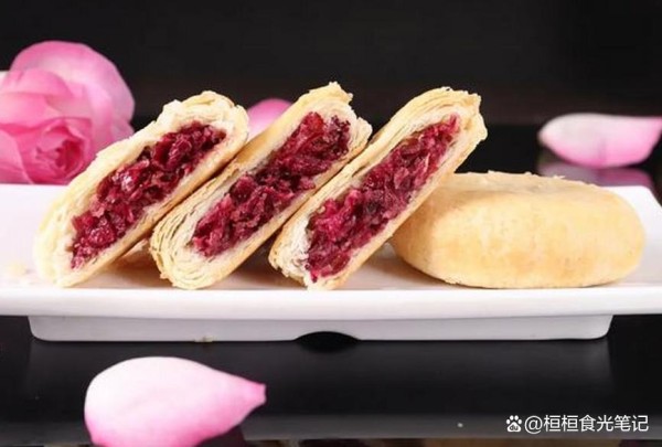 鲜花饼是云南最具特色的经典点心,以云南特有的食用玫瑰花为主要原料,制作出的酥饼口感绵软,馅料清甜。这种饼早在300多年前的清代就已由制饼师傅创造,因其花香沁心、甜而不腻、养颜美容的特点而广为流传。每年4月,当地人民都会排长队购买新鲜上市的鲜花饼,成为一种文化现象。此外,鲜花饼也曾是宫廷御点,深受乾隆皇帝喜爱,展现了其历史悠久和技艺传承的价值。