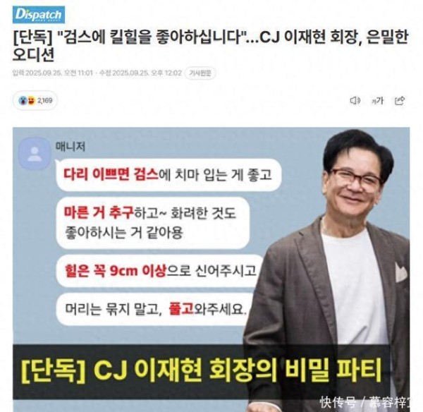 今日,韩国媒体Dispatch发文爆料CJ集团会长李在贤的私生活——开选秀派对。