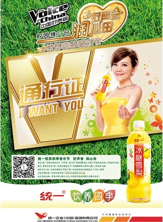 2014年,由统一饮养四季与中国好声音校园推介会联合举办的 统一饮养四季音乐节 “好声音·润心田”活动在全国范围内进行学员招募,这是统一饮养四季品牌连续第三年以音乐的形态跟消费者沟通。一向秉承公平公正的原则,统一饮养四季拒绝恶俗和恶搞(只为了博眼球却上不了台面的选手),招募的对象只能是持有学生证的人。是一场真正的强调音乐的选秀节目,选手们可以看到透明化、公开的规则,具备实力的你要好好把握本次机会。