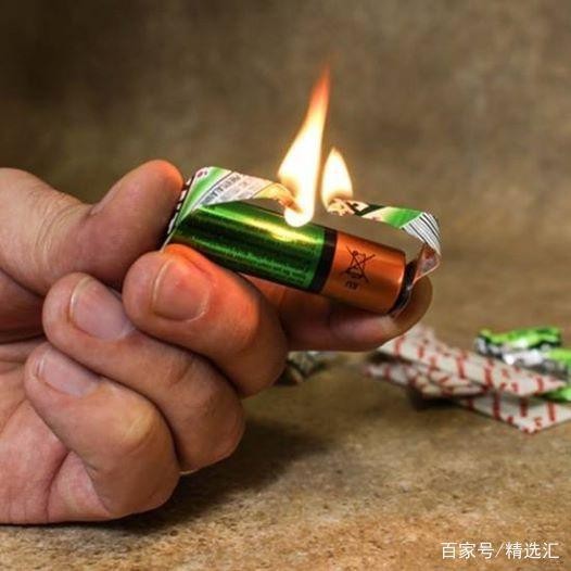 确保条带的金属侧接触到电池,而不是纸张侧。这样便可产生火焰了。另外要注意的是,这个方法仅适用于具有金属边的包装纸。而且这个方式可以会烫手,所以最好能将你的手通过手套或其它东西隔绝开。