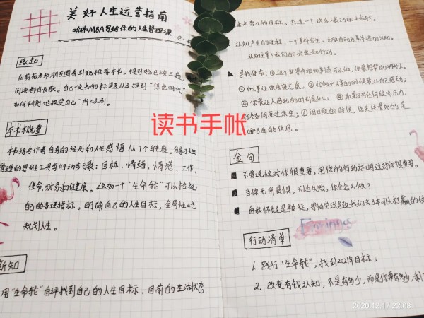 总结:本书平衡人生的方法“生命轮”和“人生9宫格”以及生涯四度有着相似之处,也说明了我们的人生有多种可能,不仅仅是以金钱去衡量一个人的成就感、幸福感!在之后的日、周、月、年计划和复盘中,我将以平衡人生的工具——生命轮和人生9宫格检视自己的人生,努力让达到平衡,让自己的生命轮滚动起来!