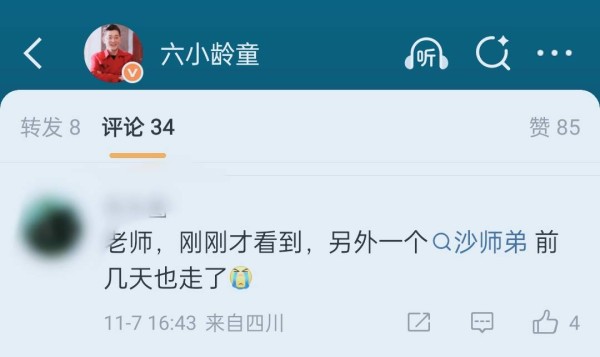 刚看了一眼,六小龄童账号还没有发悼念文章,评论区已经有人在怀念。