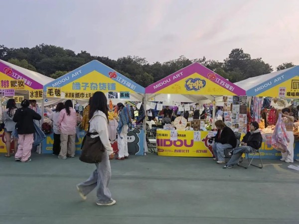以南京咪豆音乐节为例,5月3日记者在咪豆音乐节的现场注意到,从下了接驳车进入天生桥景区开始,搭着音乐节边儿的消费场景就已出现,除了很常见的各种小吃、奶茶,还出现了不少音乐节特色摊位,比如售卖充气沙发、折叠凳,提供现场化妆服务等等。