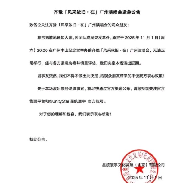 悲剧发生在屠颖为艺术奔波的路上。10月30日,他刚结束周华健演唱会的工作,便飞往广州筹备齐豫「风采依旧·在」巡回演唱会。11月1日清晨,他在酒店健身房使用跑步机时不慎摔倒,因事发时周围无人,错过最佳抢救时机,经紧急送医后仍不幸离世。令人唏嘘的是,当天本是他担任齐豫演唱会音乐总监的首秀,主办方不得不紧急宣布演出延期。就在前一天,他还在社交平台分享了自己在酒店健身的照片,配文充满对工作的期待 ,谁也未曾料到这竟成了他与世界的最后告别。