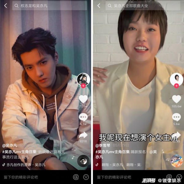 5月29日,吴亦凡在抖音发布一条带有#吴亦凡MV主角召集 话题的短视频,明星效应之下,该视频上线后很快引发关注,#吴亦凡选角炸出好多美女 、#吴亦凡要不你来试试 等话题随之冲上抖音热搜。以此为起点,吴亦凡新歌MV选角的活动在抖音迅速发酵。