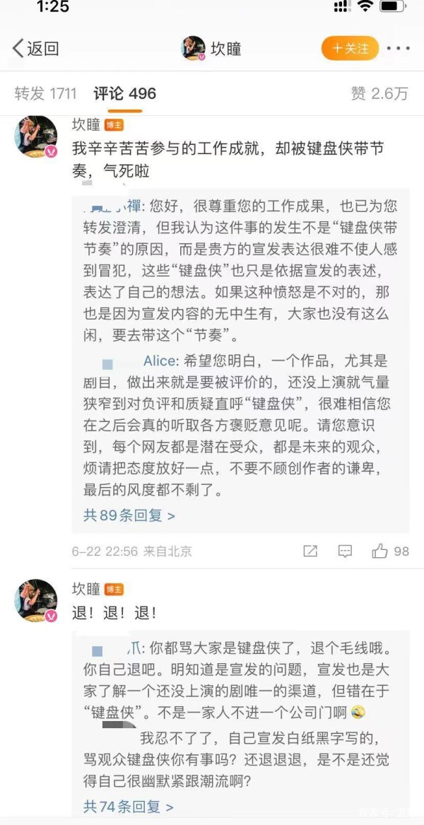 网友都认为根本不是键盘侠的锅,明显就是宣发用词不当,所以才引起网友的争议,大家以为宣发误导网友以为音乐剧的内容也是这样,其实宣发和剧所表现的内容是两回事,很简单的一件事,编剧的说法也是很不靠谱,感觉好像是在博宣传,目的让大家认识这部剧,究竟是谁在带节奏,这个真不好说?