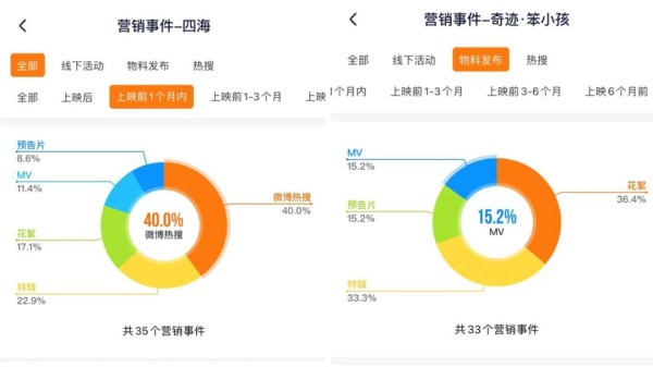 事实上,在春节档期中,除了主旋律类型影片,音乐物料宣发占比也在持续扩大。除了上文提及的《奇迹·笨小孩》音乐宣发占比15.2%,截至2月3日,根据灯塔专业版数据,春节档影片《狙击手》《四海》《这个杀手不太冷静》的音乐mv物料分别占总宣发物料的16.7%、11.4%和17.6%。