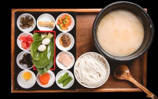 这是大理地区的一道传统名吃,以其丰富多样的配料和鲜美的汤底而著称。在一个热腾腾的大锅里,热气腾腾的高汤不断升腾,将各种新鲜的食材逐一烫熟。然后,再倒入碗中的米线,瞬间释放出浓郁的香气。