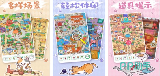 以猫咪为主题的趣味寻物游戏,玩家需在不同关卡中找出散落各处的指定物品,收集后可用于家居布置或服装搭配。独特的互动机制融入解谜元素,通关后可获得辅助工具奖励,如使用一次放大镜即可显示隐藏物品的线索提示,也可通过与猫咪互动获取关键信息,提升游戏可玩性。