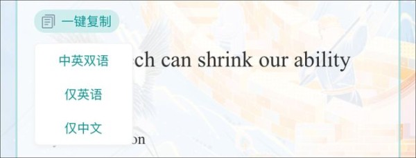 一键复制:很多同学有做笔记的需求,文章页面支持一键复制文本:中英双语、仅英语、仅中文,3种模式可供选择。