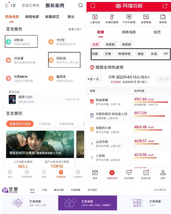 在网剧兴起之前,电视剧的收视率和电影的票房,是衡量影视作品播出情况的重要指标,我们在今天常使用的猫眼、灯塔和艺恩,即诞生于对电影票房实时反馈的需求。