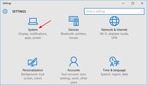 通过在开始菜单中单击其图标或按Windows徽标键 + I键盘快捷键来打开“设置”应用程序。 点击系统。